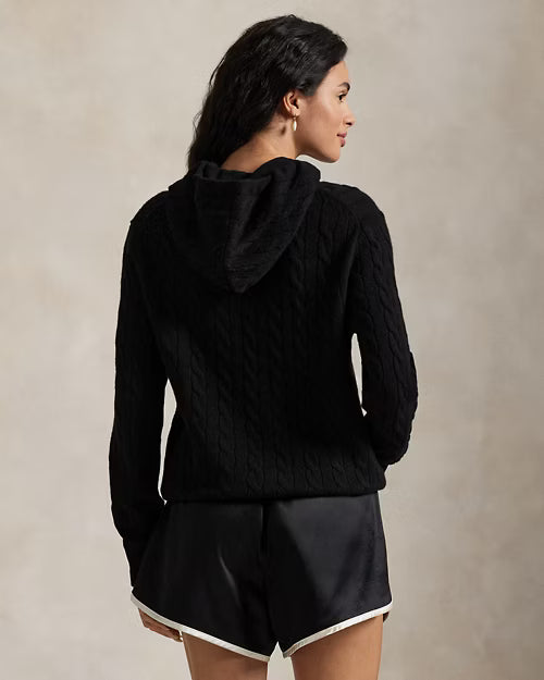 - Kapuze mit Tunnelzug. Lange Ärmel mit gerippten Bündchen. Rippenstricksaum.