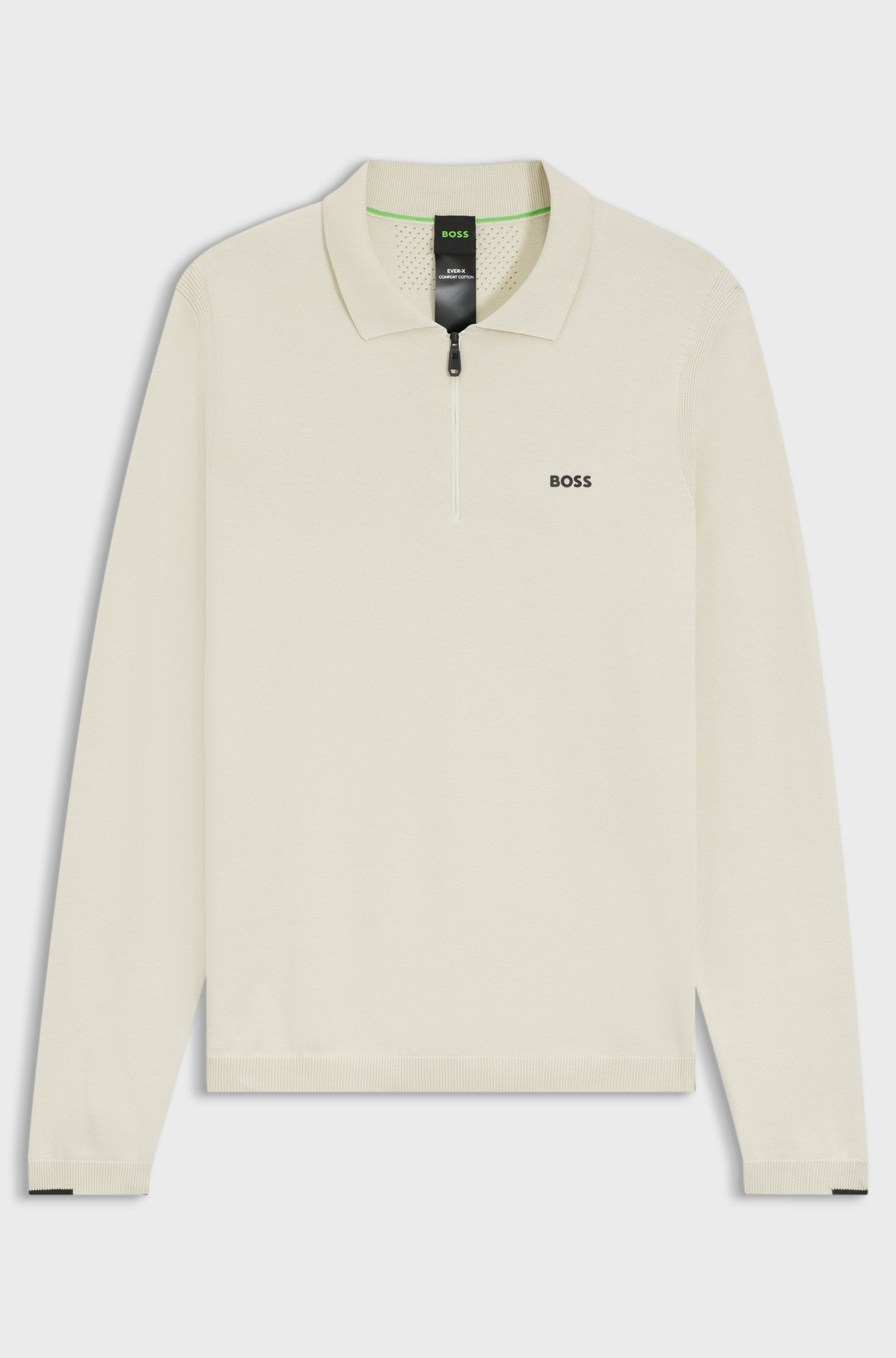 Mit Perforationen für bessere Luftzirkulation ist dieser Regular-Fit BOSS Pullover ideal für Layering-Looks. Aus softem Baumwoll-Strick. Mit Reißverschlussleiste und gummiertem Logo-Print.